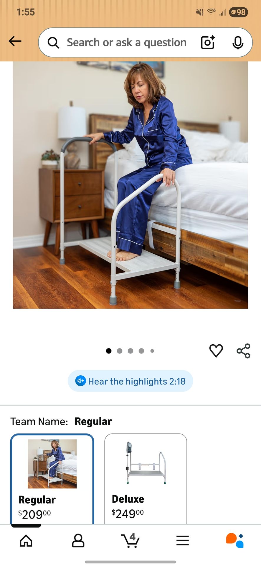 Step2Bed Bed Rails For Elderly with Adjustable Height Bed Step Stool for Fall Prevention - Portable Medical Step Stool comes with Handicap Grab Bars making it easy to get in and out of bed FALL RISK REDUCTION & MOBILITY INDEPENDENCE: Step2Bed portable bed assist rails help your loved one get in and out of bed safely and easily. Our one-of-a-kind adaptive bed assistance products include durable, easy grab handles for extra safety and support. They have been clinically shown to help decrease both the required effort and slip force during the transition out of bed, conceivably leading to a safer, more comfortable experience. ADJUSTABLE HEIGHT STOOL: This uniquely designed bed stool offers versatile height adjustments from 2.5" to 7.5", suitable for all sides of high or low beds allowing users to customize the size for their specific needs and further reducing the risk of falls. Total size of the bed step is 18"L x 32"W x 32"H. NON-SLIP, HEAVY DUTY STEP STOOL: This extra wide step stool features a non slip step and self adhering straps for medical bed safety, and assisting rails rated up to 400lbs with soft foam padding for additional stability and comfort. Already assembled, any questions feel free to ask