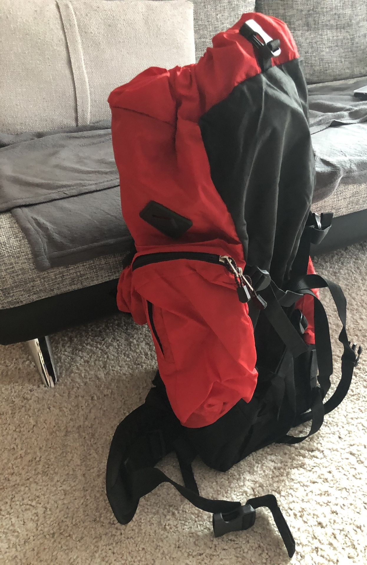 Selling a brand new and never used hiking backpack by Marlboro. Has original tag. It is a red color.