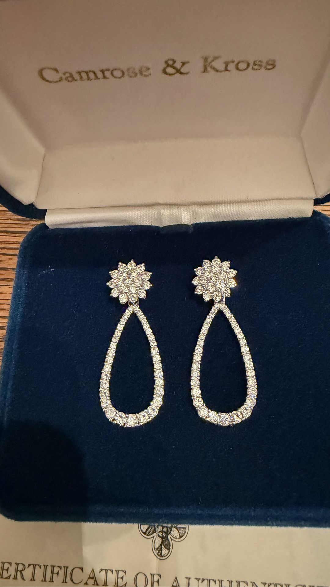Camrose & Kross Jacqueline Kennedy Silver Teardrop Rhinestone Earrings COA