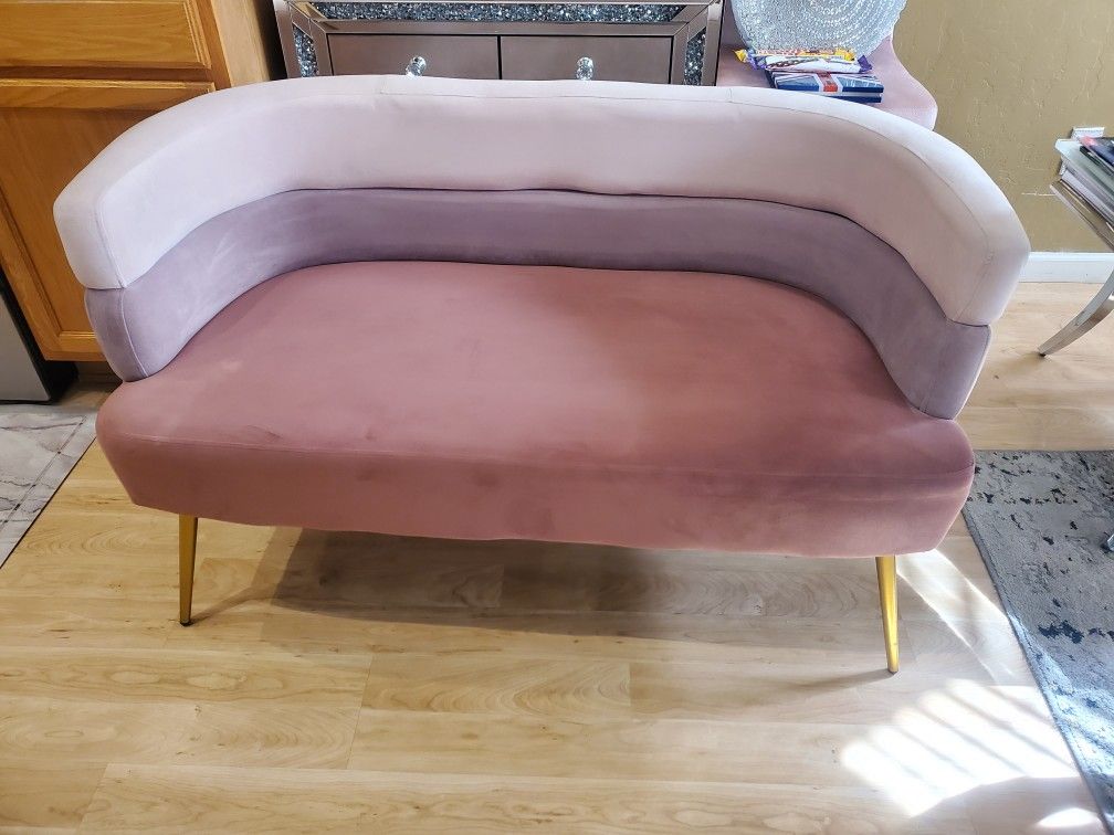 Cute couch for any seating area. Was only used for decor so it was never really sat on. It is in perfect conditions. Measurements are shown the pictures above!