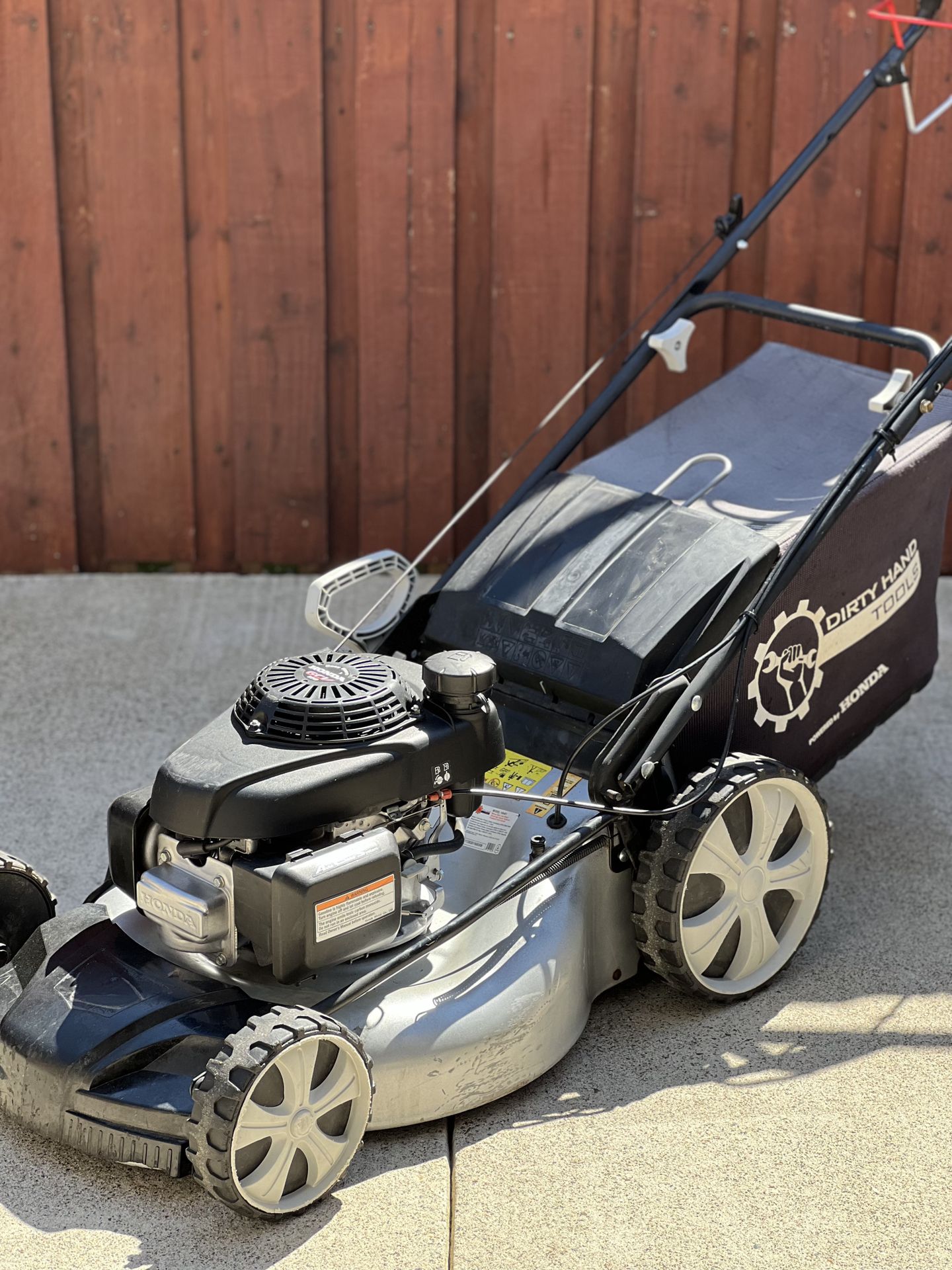 Dirty Hand Tools powered by Honda GCV160 self propelled lawn mower # new oil # new filter # new blade # freshly tuned # starts right up