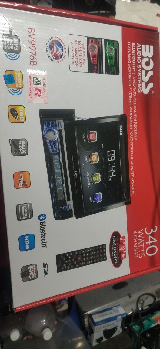 BOSS AUDIO SYSTEMS BLUETOOTH DVD/MP3/CD /AM/FM RECEIVER FEATURING MOTORIZED 7" WIDESCREEN TOUCHSCREEN DIGITAL TFT MONITOR MODEL#BV9976B BRAND NEW IN BOX CHECK OUT ALL THE PICS FOR MORE INFO. THANKS ASKING $125 O.B.O.
