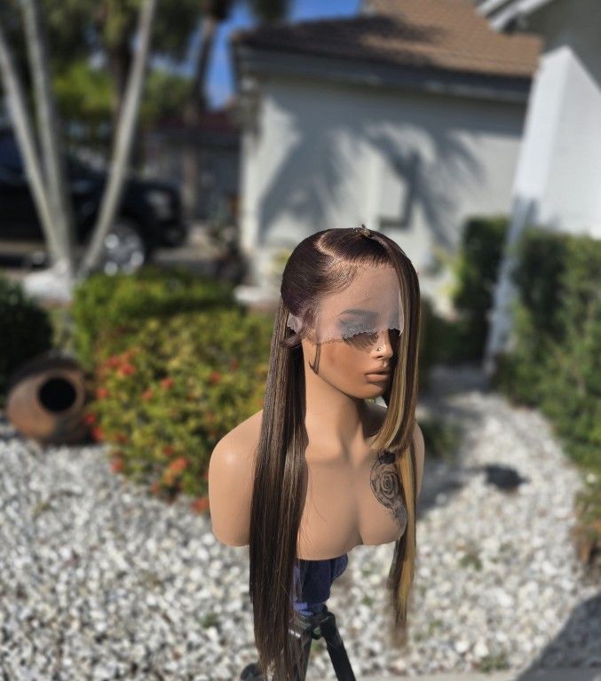 Brand new Glueless wig 13×6 Comes with band underneath for tightening Can be a middle part also Half up half down They go pretty fast First come first serve Blended ALL WIGS COME STYLED AND PLUCKED ALREADY FOR MY GIRLIES WHO DNT KNOW HOW TO DO THEIR OWN HAIR. PUT ON & GO Blended Perfect for photoshoots Or last min events etc