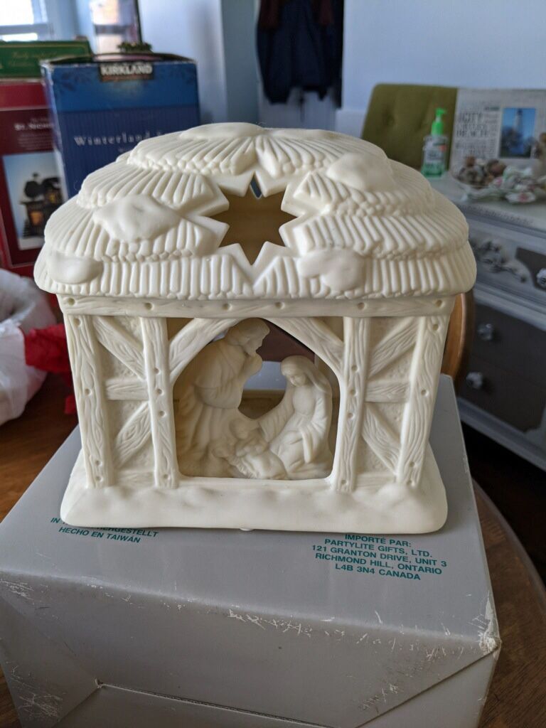 Ceramic Nativity Christmas Ornament holds tea light
