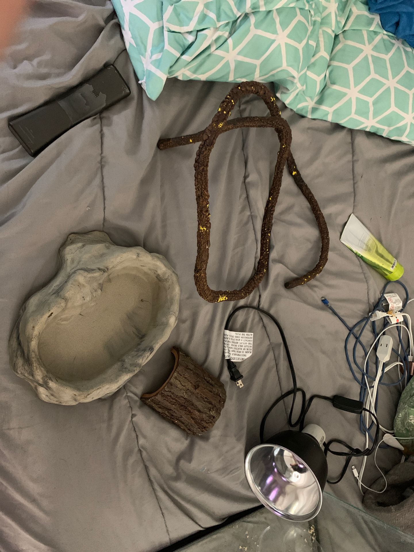 The 20 Gallon has a a little hole cut into it because it was used for frogs super clean and only used for about a month and the 10 gallon is in perfect condition. No cracks or anything. also have a large water bowl, tree vine, a half log, a lamp and two digital thermometers. Asking $120 for everything obo Or $60 for 20 gal $35 for 10 gal $15 for lamp $10 for bowl $5 for half log $5 for tree vine $5 for both thermometers