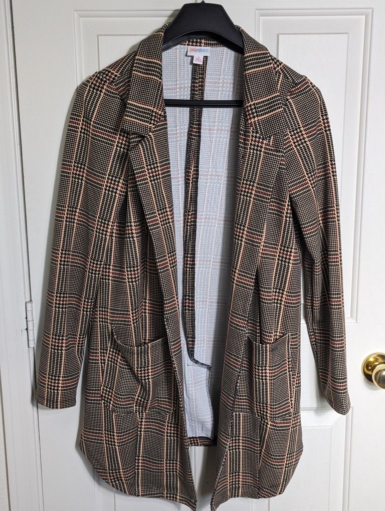 LULAROE Multicolored Houndstooth Plaid Open Front Long Blazer Size Small
