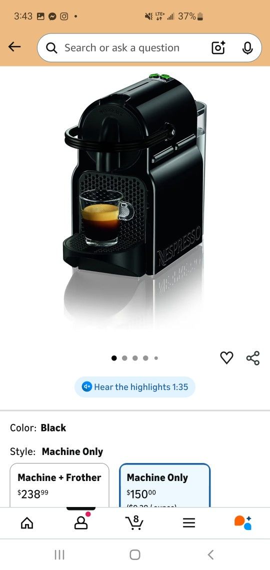 Selling my used (works great) nespresso machine for only $75 or best offer! Originally $150!