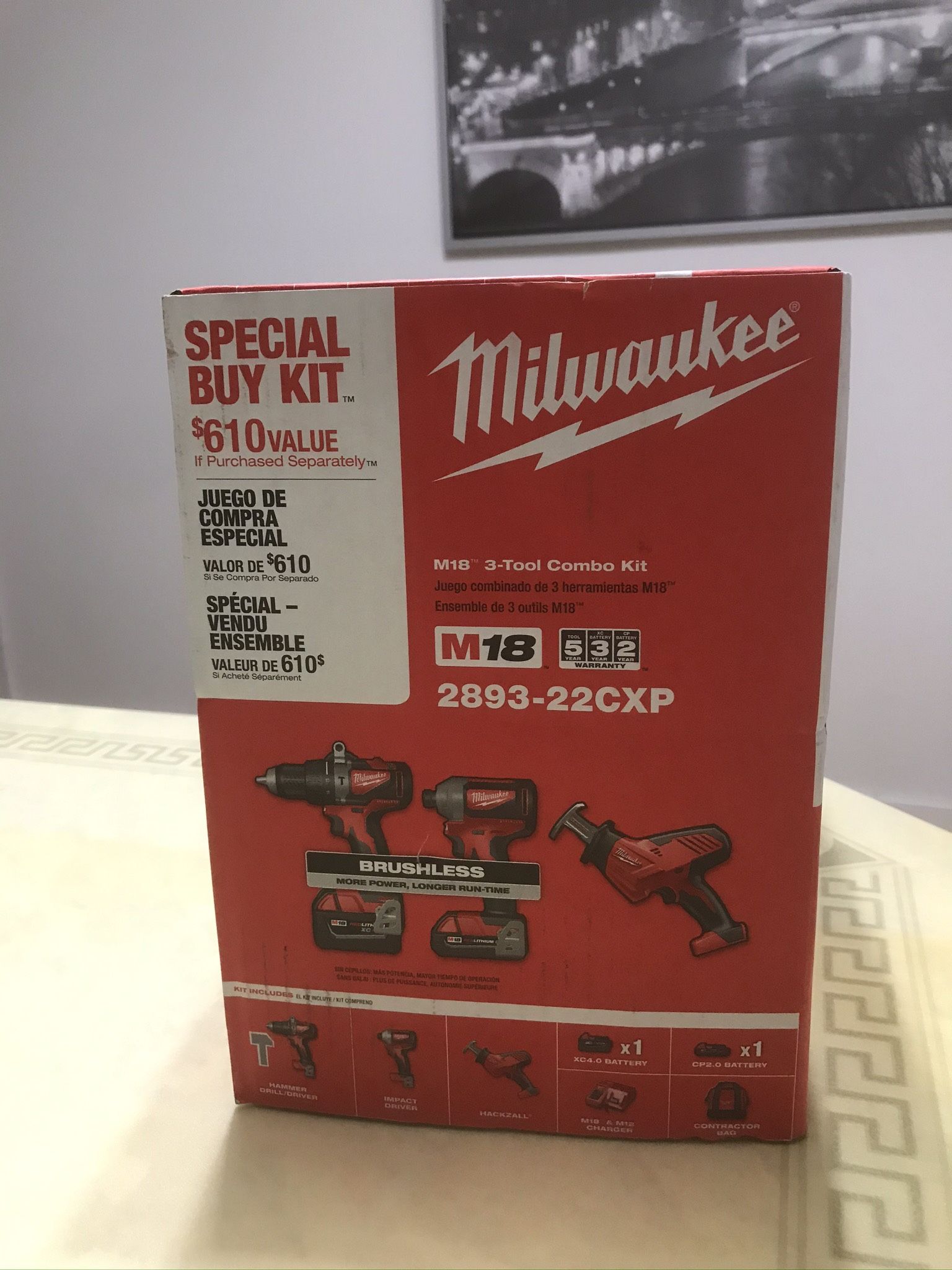 New combo three 3 tools hammer /drill driver , impact driver , hackzall ( one hand reciprocating saw ) brushless , 2 batteries & charger with heavy duty carry bag , Milwaukee 2893-22CXP -M18- $320