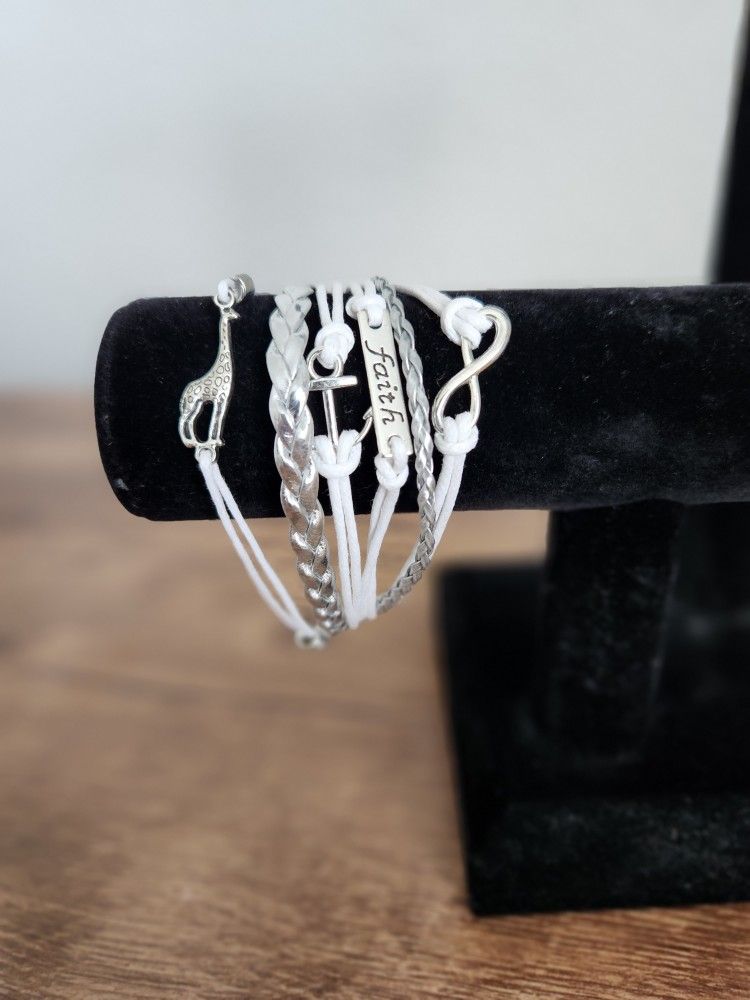 Infinity Love Charm Adjustable Bracelets white Leather