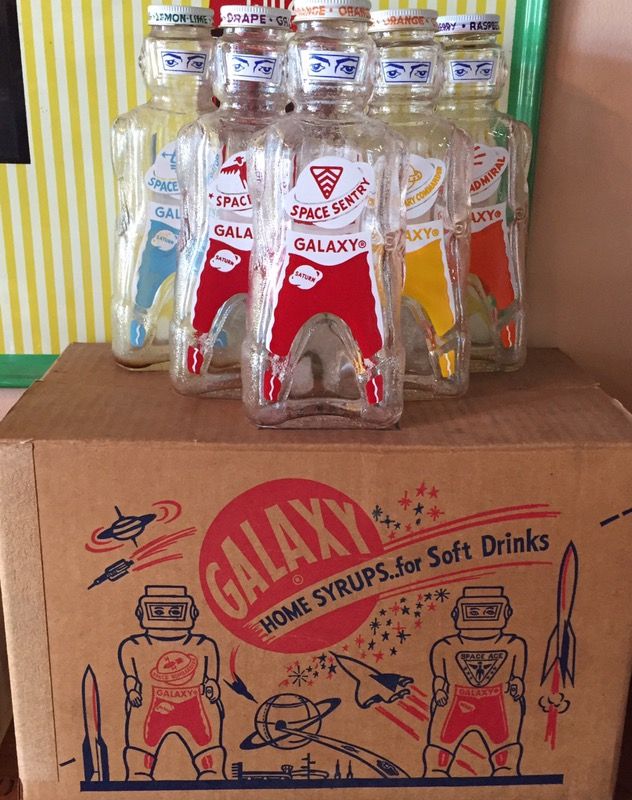 1950's set of 12 soda syrup bottles/banks with original box
