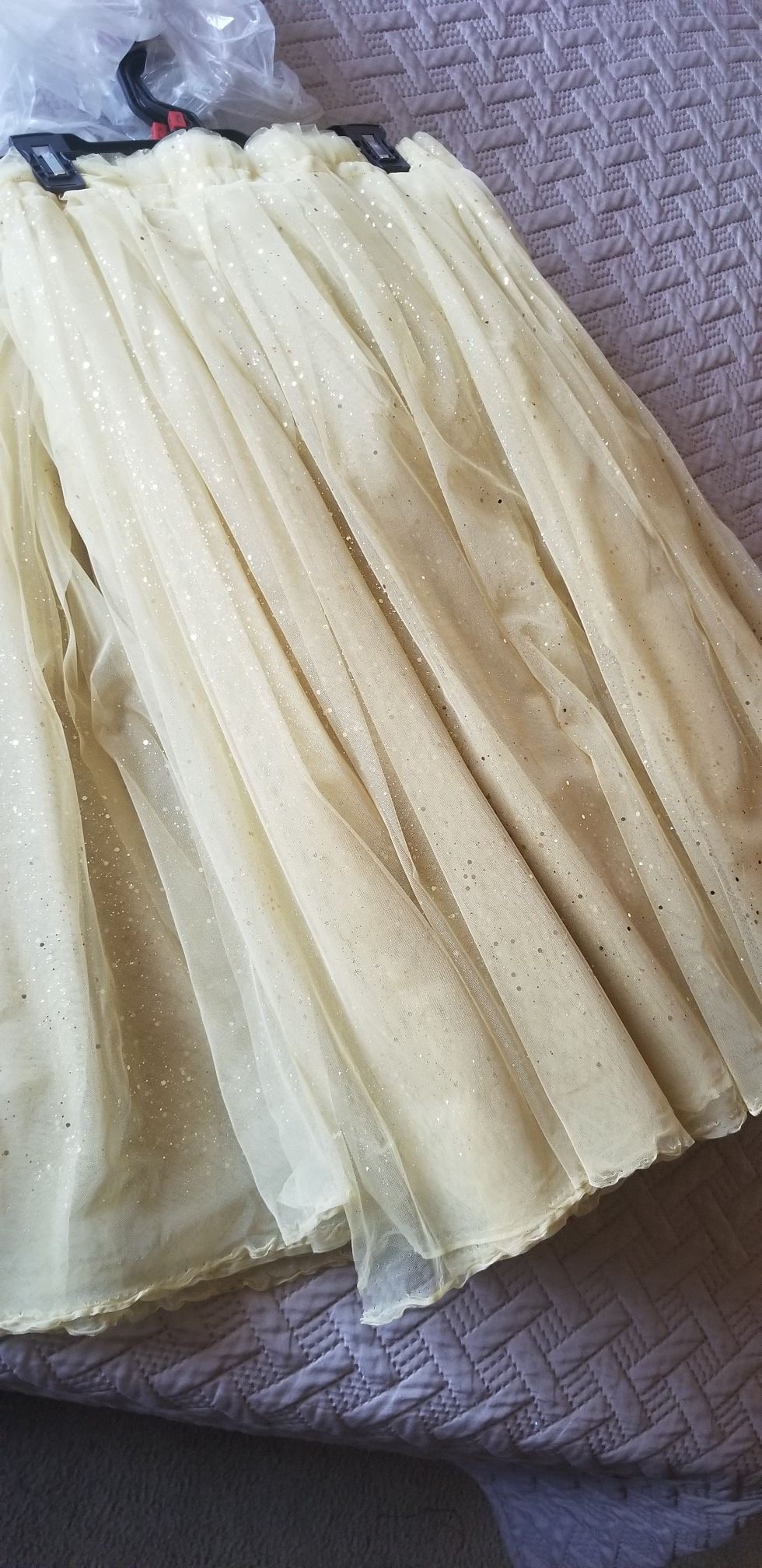 New gold with glitter table skirt i have 2 . One is 8 1/2 feet long and the other is 20 feet long $70 for all