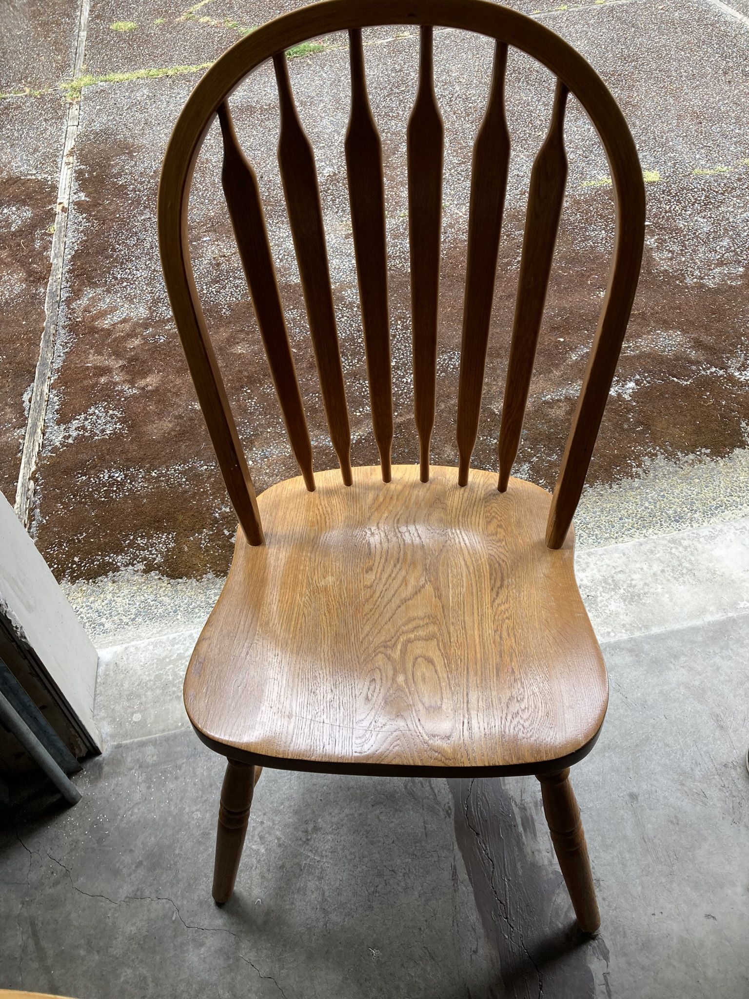 Matching CLASSIC French Farmhouse style Solid Wood Chairs - Set of 5 (can be sold individually)! We have 5 chairs, one (as seen in pictures) can be buffed and repolished. The rest are in good condition with minimal wear. Set of all 5 - $50 Individually - $12 per chair