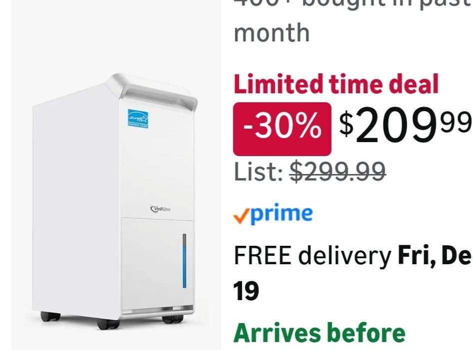 4,500 Sq.Ft Most Efficient Energy Star 2025 Dehumidifier,Vellgoo Max 70 Pint/D (Standard 56 Pint/D) Dehumidifier for Basement with Drain Hose, Smart Humidity Control, for Home, Bathroom, Garage
