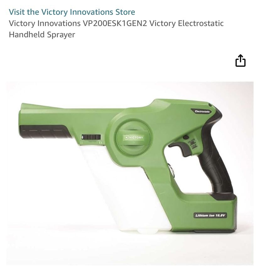 I have 2 for 545 or best offer 1 at price listed 2 backpacks to match (500 for the 2) Professional Cordless Electrostatic Sprayer allows the user hours of spraying time (4-hours per battery charge) without the hassle of dragging a cord. In addition, it is designed to save time and labor, spray less liquid and cover more surfaces. Victory Sprayers' Patented technology provides an electrical charge to solutions, allowing them to wrap conductive surfaces with an effective and even coverage. Double-charged particles envelope all conductive surfaces shadowed, vertical and underneath.Patented electrostatic charge penetrates chemical providing a thin, even spray pattern on all surfacesCordless convenience allows for effortless movement room to room3-in-1 nozzle allows you to set particle size to match your applicationVictory 16.8-Volt lithium-ion battery allows you to run between 3 tanks to 11 tanks on a single charge (depends on nozzle setting) WARNING: This product contains chemicals known to the State of California to cause cancer and birth defects or other reproductive harm. Visit https://offerup.co/faYXKzQFnY?$deeplink_path=/redirect/ for more info.