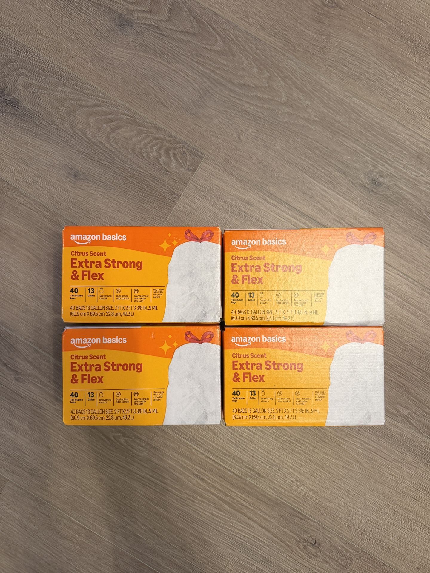 4 Brand new in the box Amazon garbage bags citrus scent. Sold out online.