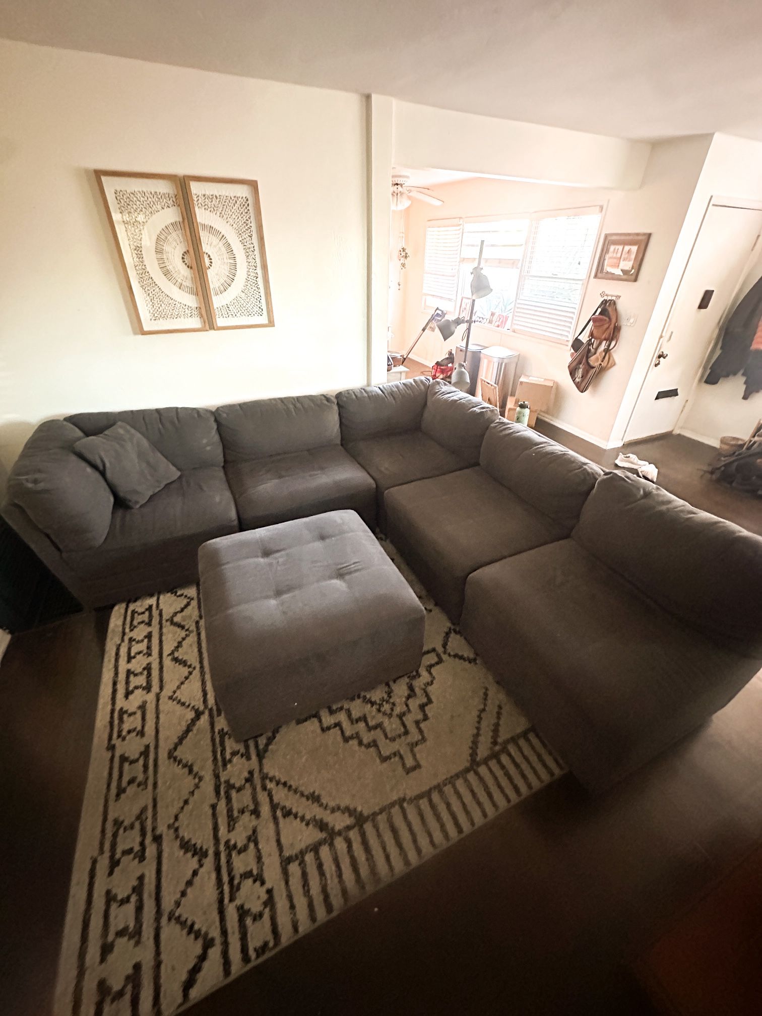 6 piece couch including ottoman and throw pillow. The couch is in great shape and is super comfortable. It can be arranged into multiple orientations. It’s too large for my house and I need to downsize $400 OBO
