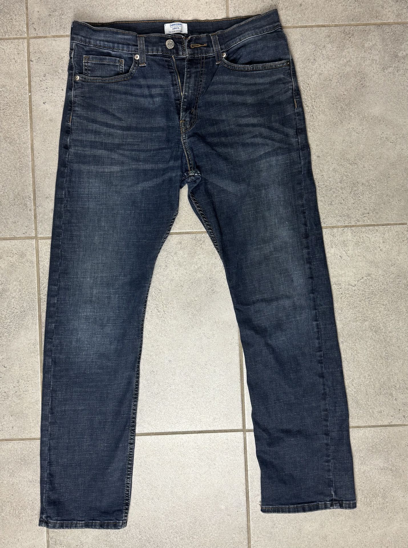 Good condition Denizen from Levi’s jeans. Slim fit with dark wash and slight stretch. No rips or major flaws. Normal wear only. Size 32x30 (measurements shown in photos).