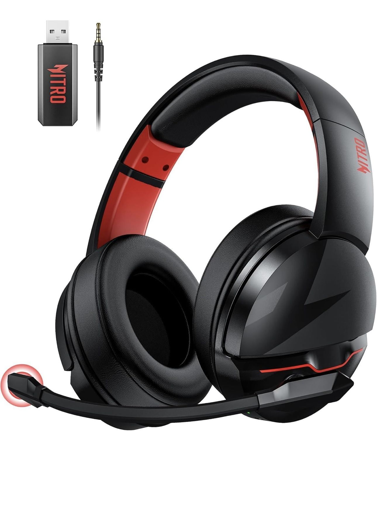 acer Wireless Gaming Headset, PS5 Headset with 2.4GHz for Ps5, Ps4, PC, Switch, Bluetooth 5.3 + 100Hrs Gaming Headphones with Noise Canceling Mic for Laptop, Mobile, Mac, 50mm Drivers (Red)