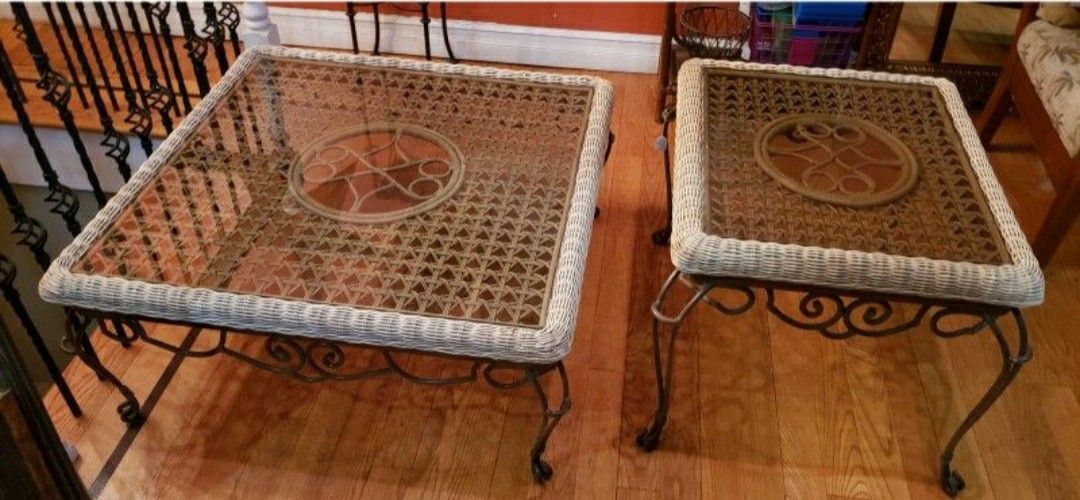 Coffee table 38wx38d End table 24w 27d Local curbside delivery available after payment... See our other great listing...we have expanded to clothes and misc. Items..we have new arrivals daily. Online only with porch pickup...we accept venmo..paypal and cash. You can view the tables in person in south county near Bayless and Lemay Ferry Rd