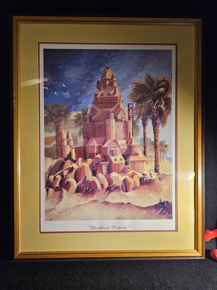 Rare Vintage Limited Numbered 119/600 Artwork Signed By Artist Thomas Davis "Beachfront Property "