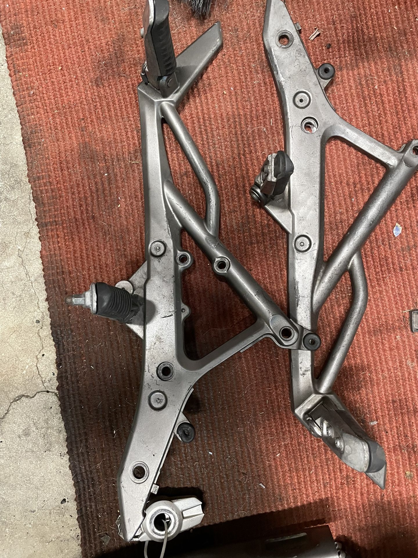 Parts left over. Triple tree, gas cap, seat latch all with matching factory key. Swing arm, lcd display, tail section and left and right foot pegs. Some plastics. Also have front and rear wheels, not shown. I don’t need these parts and open to low offers. Thanks