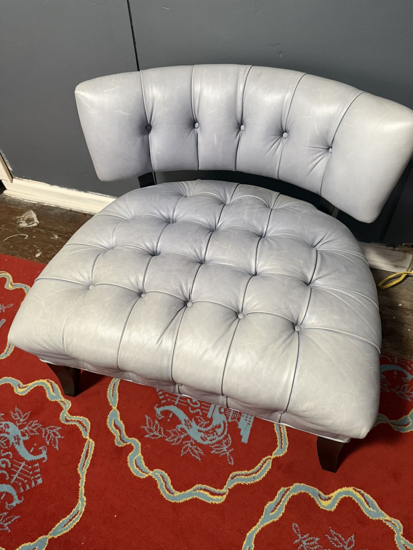 Baby blue Leather Tufted Chair