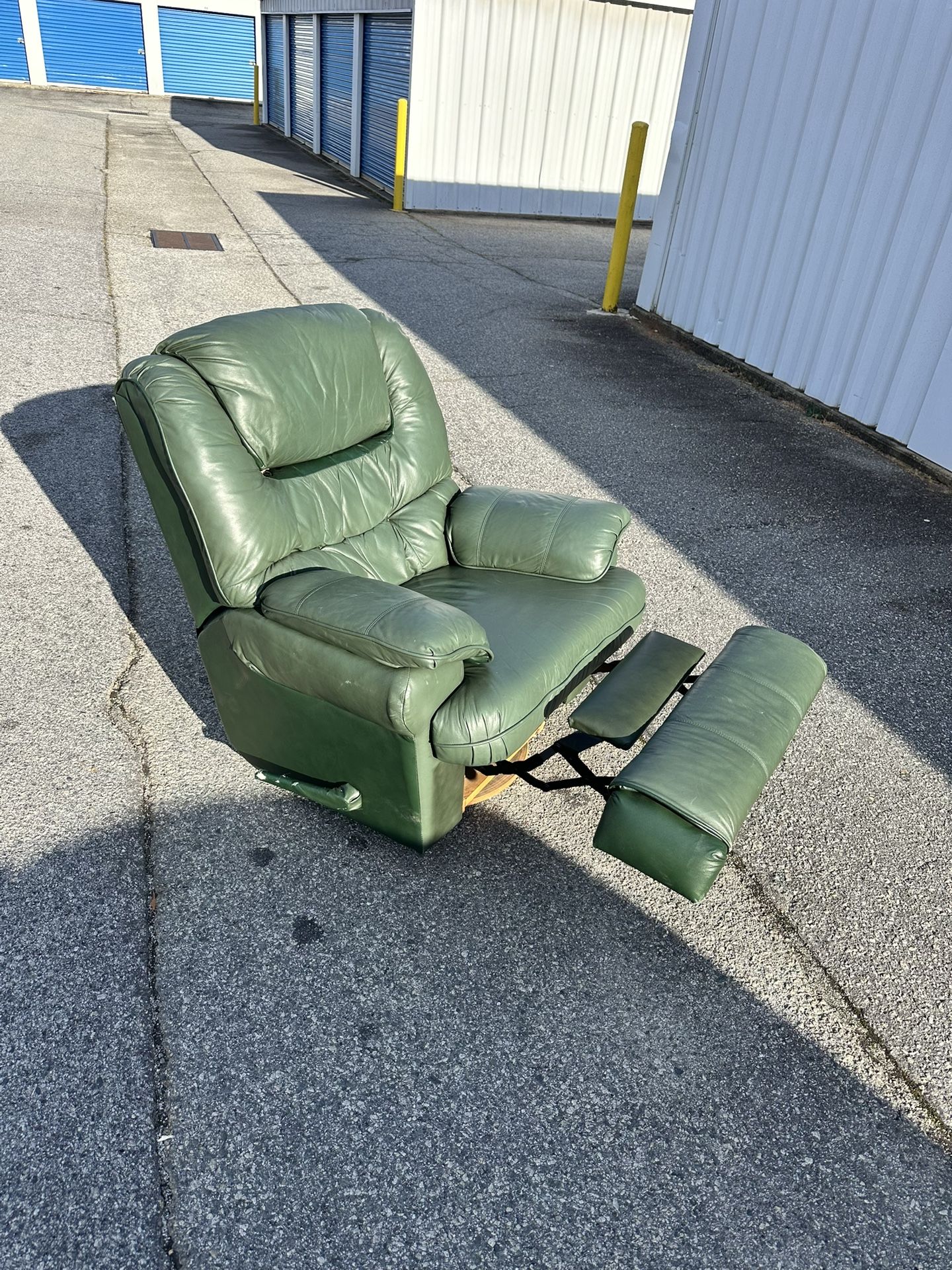 Beautiful dark green recliner ! Works great! Recline handle opens and closes great! Smoothly spins 360 ! Price-$130 with FREE DELIVERY! Price-$100 PICKED UP! Thanks!