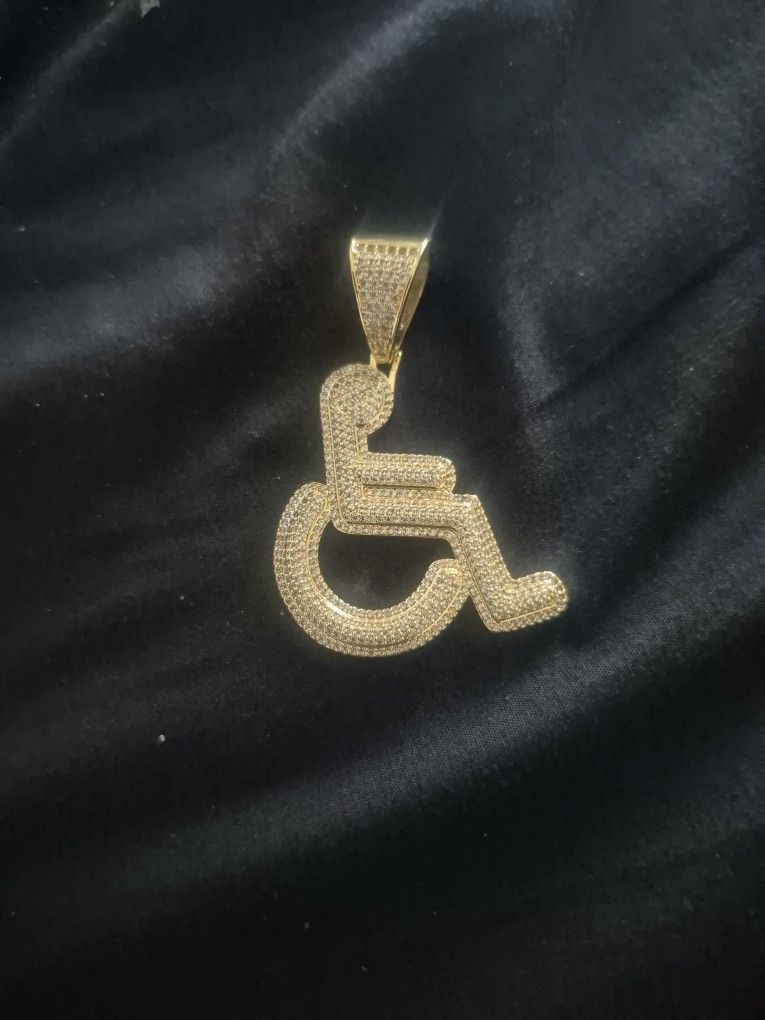 GOLD PLATED MOSSIANITE DIAMOND WHEELCHAIR PENDANT FOR $250 SILVER MOSSIANITE DIAMOND WHEELCHAIR PENDANT $200