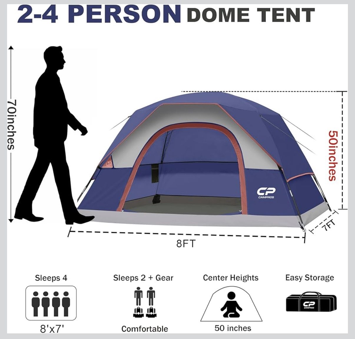 Tents for Camping 4 Person Tent Waterproof Windproof Double Layer Camping Tent, Easy Setup Dome Tent with Large Mesh Windows & Wider Door for Outdoor Camping & Hiking