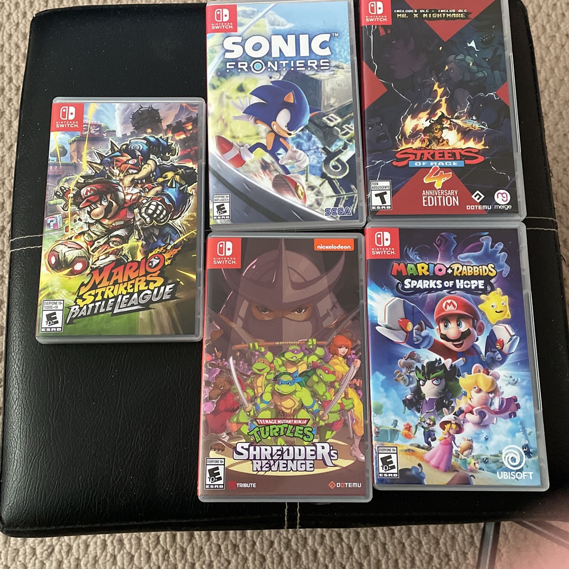 No longer playing these games. Super Mario Strikers Sonic Frontiers Streets of Rage 4 Mario + Rabbids- Sparks of Hope Teenage mutant ninja turtles- shredders revenge