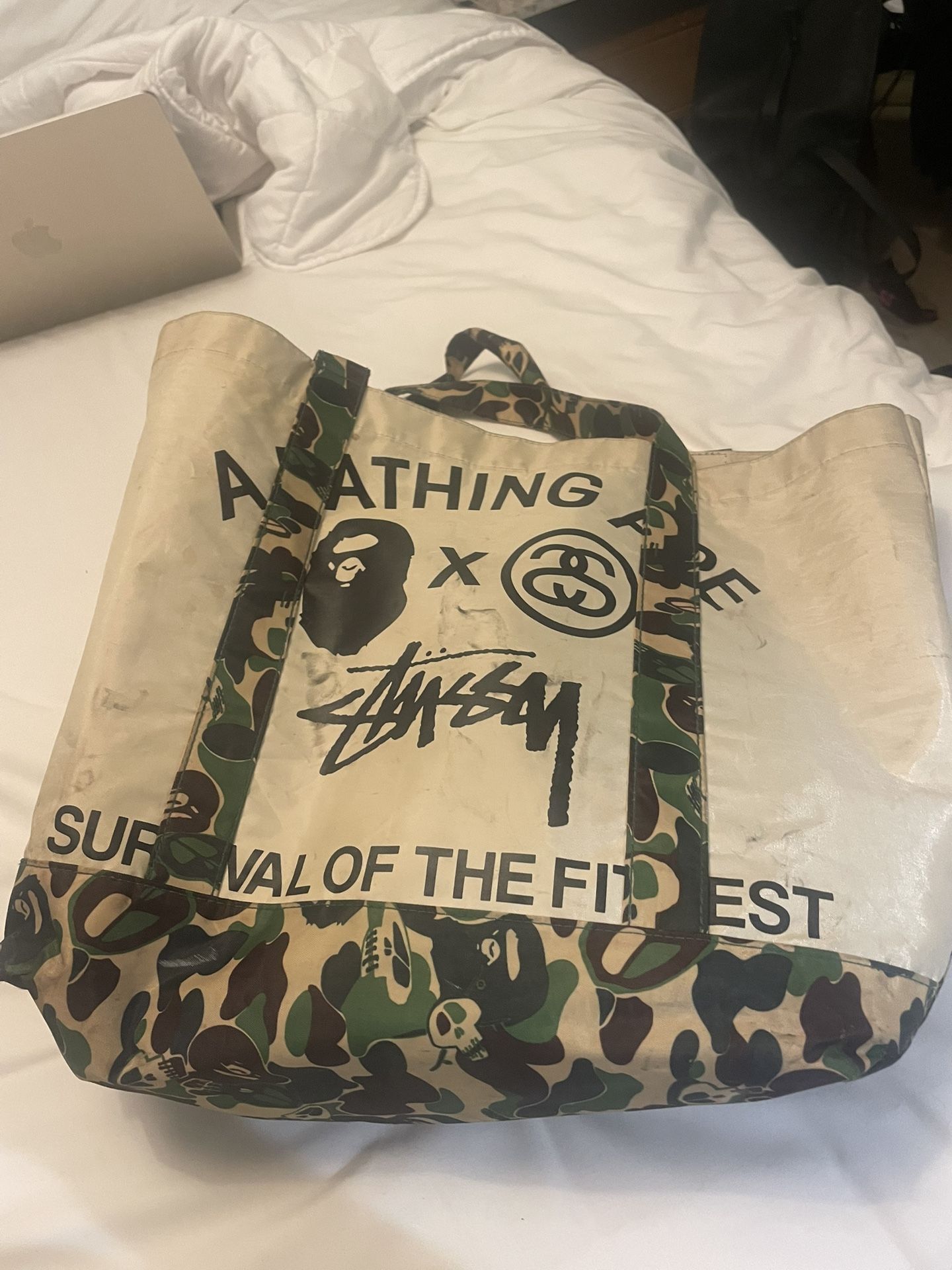 Vintage Survival of the fittest Tote bag collaboration with Bathing Ape × Stussy Nylon