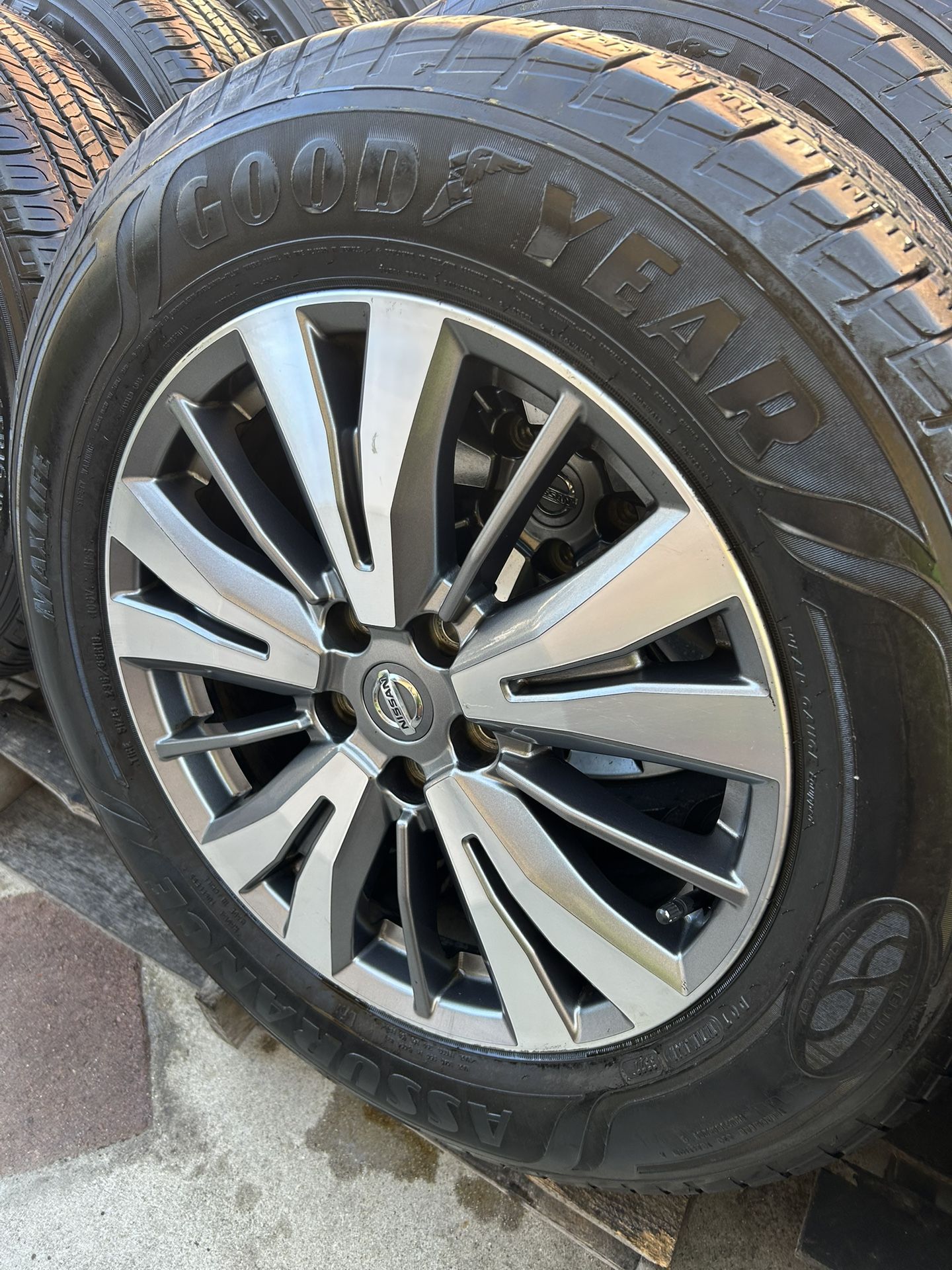 TIRES SIZE: 235 / 65 RIMS-18 5. LUGS. 5. BIRLOS BOLT PATTERNS: 5 X 114.3 ( 5 X 4.5 ) FOUR TIRES: 99% GOOD CONDITION THE TIRES USED AND ARE BEING SOLD AS IS ALUMINUM ORIGINAL WHEELS NISSAN CASH ONLY