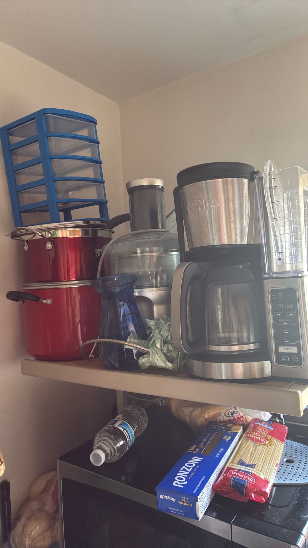 Juice extractor 20$ 2 medium red pots 20$ Coffe maker by ninja 20$ Keurig coffe machine 20$