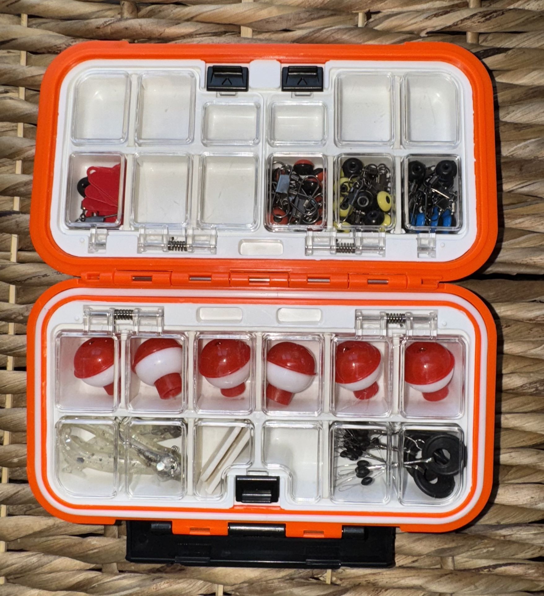 Keep all of your fishing gear dry and organized in this colorful Nifty Waterproof Fishing Box. Fishing box to keep your fishing accessories dry and organized Bright color makes it easy to locate 2.16" H x 3.94" W x 6.7" D 9.88-oz. With the holidays coming up, it would make a great Christmas gift either for yourself or for someone you love πβ¨