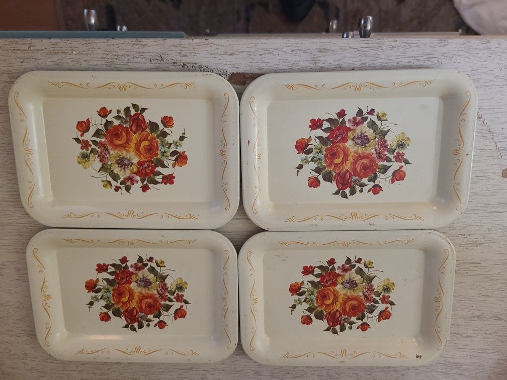 Set of 4 small trays or coasters. Excellent vintage condition. No chips nor dents.
