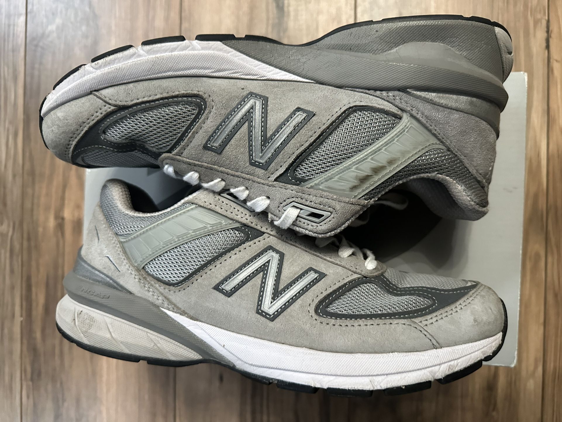 Used New Balance 990V5 Grey size 8 Men’s. Son can’t fit them no more. They in good condition. Need to be cleaned with good cleaner to get this scuff/dark mark off on the inside of the shoe in one of the pictures. Once that’s done they look like new.