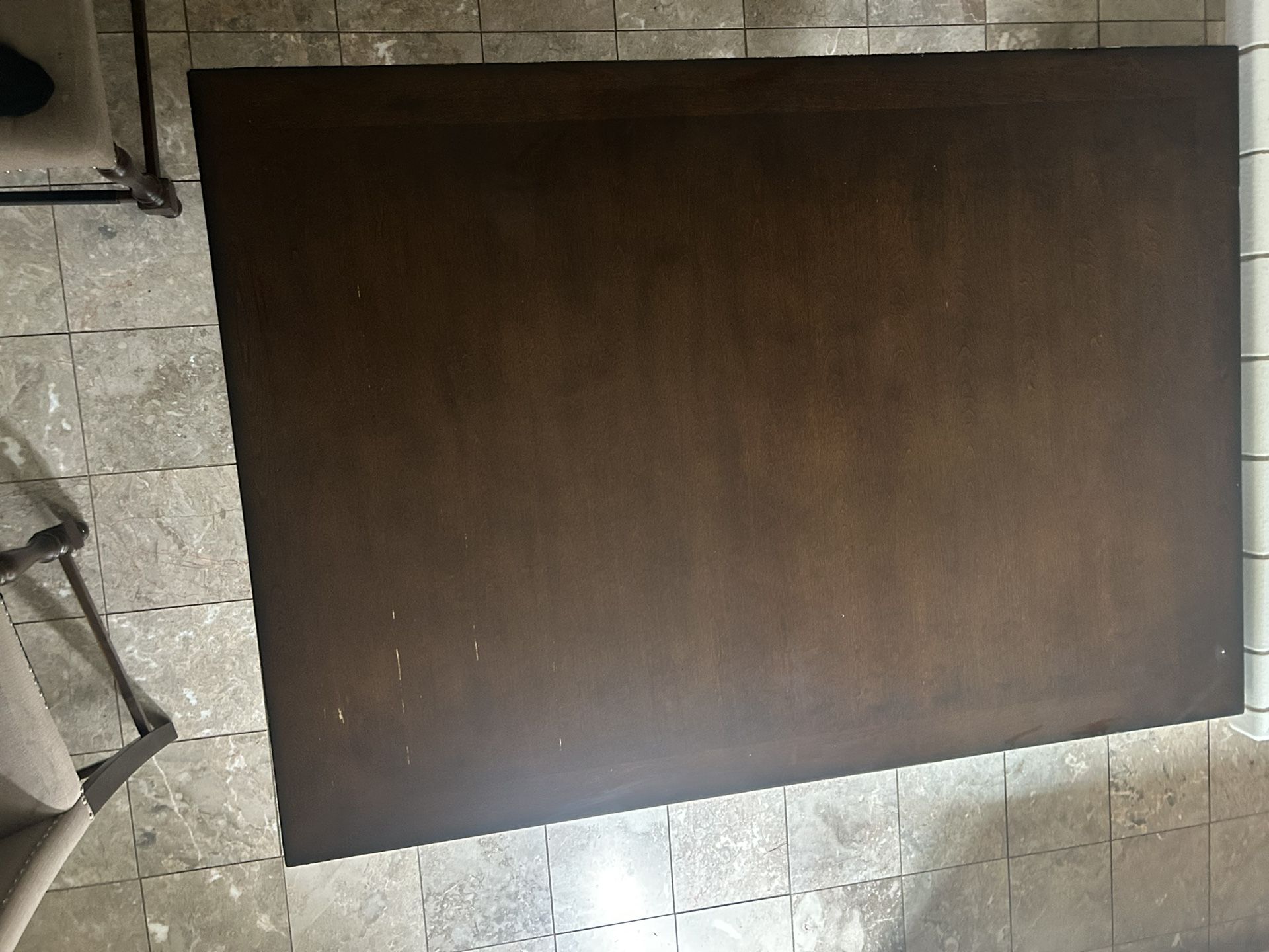 Dark wood , well built to last a lifetime high dining table 37” height 42x60inches