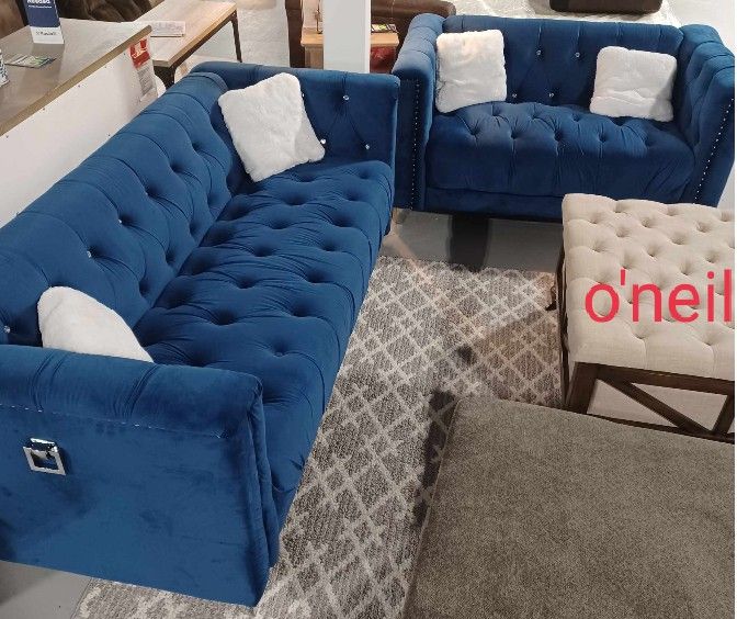 Russell Blue Living Room Set/Brand New, Comfy, Sofa And Loveseat