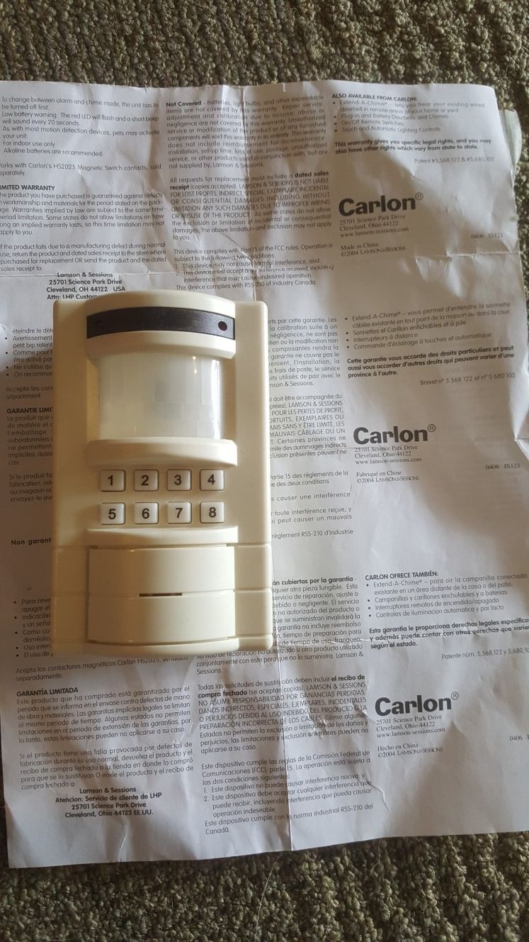 Portable battery or power by AC to dc code alarm alert perimeter infra red motion detector. Use as child monitor or business as door or motion chime. Best offer