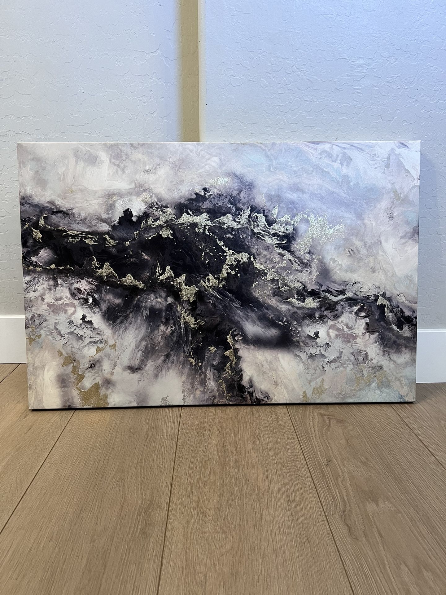 36x24 - 3 feet by 2 feet- Large Black/White/Gold Glitter Canvas Art Abstract Artwork. Perfect condition large canvas wall Art, Artwork, wall decor! I have so many wall pictures for sale. Wall Decor Artwork. Framed wall art, artwork, wall decor, wall art, wall picture, framed art. In perfect condition. 35.5 width, 23.5 height, 1.5 depth I have another 36x24 Large Black/White/Gold Canvas that would go well with this painting. One hangs vertical and the other horizontal. Selling each for $75 or both for $140! I’m selling multiple household items, furniture and home decor. Check out my other listings! The more you buy, the more you save!!