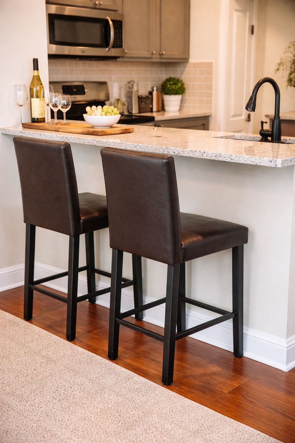 YES, IT IS AVAILABLE. Set of 2 modern bar stools with sleek black wood legs and dark brown cushioned seats. Clean, minimal design—perfect for kitchen counters or small spaces. I have many more items available in my Marketplace store—check my profile for bundle discounts. 23” height Price: $45 for both Compact, lightweight, and easy to move. Great condition and ready to use. SAME DAY DELIVERY available. Item can be reserved with advance payment. Check my Marketplace history for reliability.