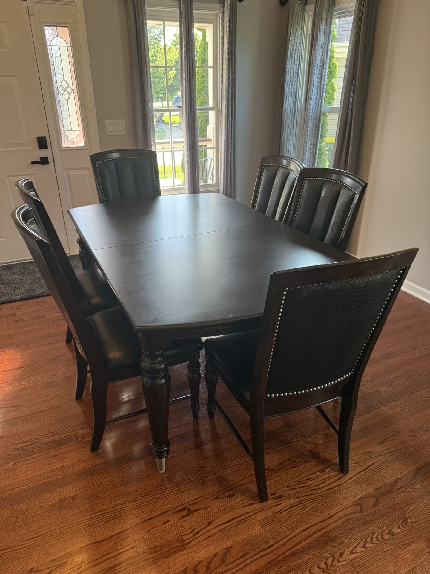 Absolutely beautiful and solid dinette set with six chairs and extension leaf. Retail: $2800.00 Asking: $1500 or Best