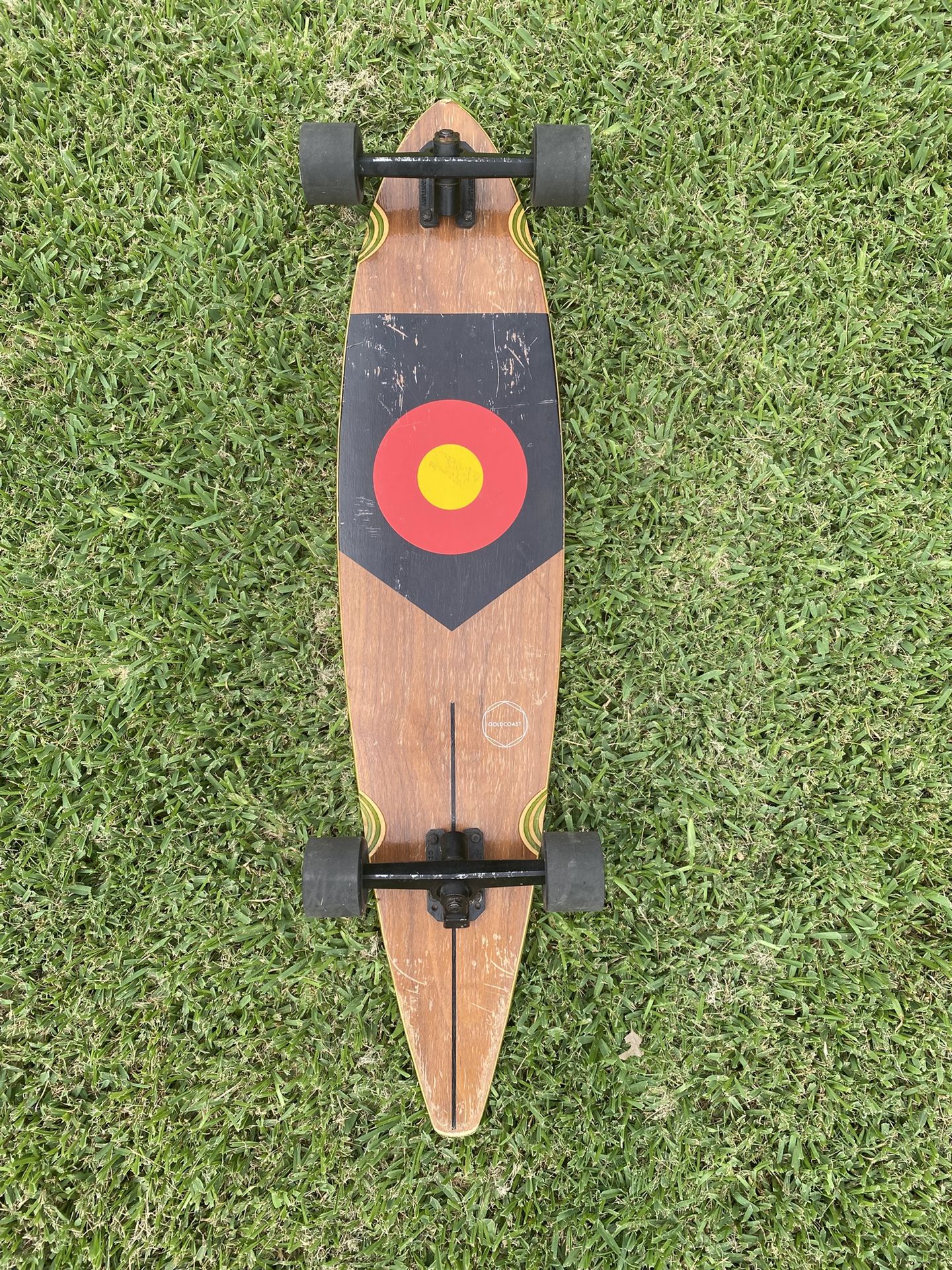 Designed for cruising & carving, it offers a stable and enjoyable ride for both beginners and experienced riders. Pick up only in Allen—no delivery 70mm Shred Boot Wheels 40” long and 9” wide Lots of life left in this board but Definitely scuffs and wear—see all photos