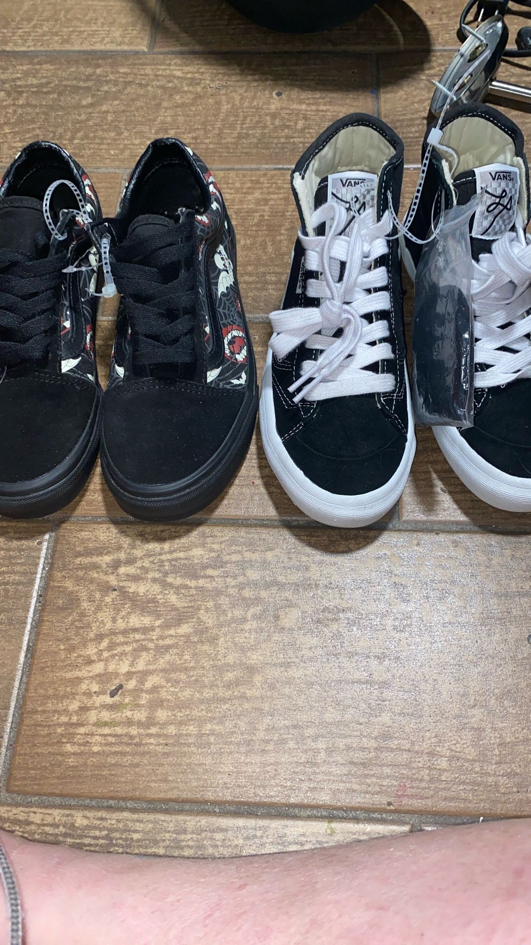 Kids Vans Off The Wall shoes. Brand New with tags Black one with skulls size 4.5 $15 Black high top ones Size 3.5. $20 Cross streets 35th ave Van Buren Please see my other offers