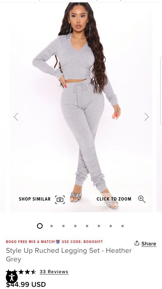 Grey fashion nova scrunched legging set Never worn Still has tag Both the cropped hoodie and leggings are size 1X Original price is $45. Selling for $30 obo