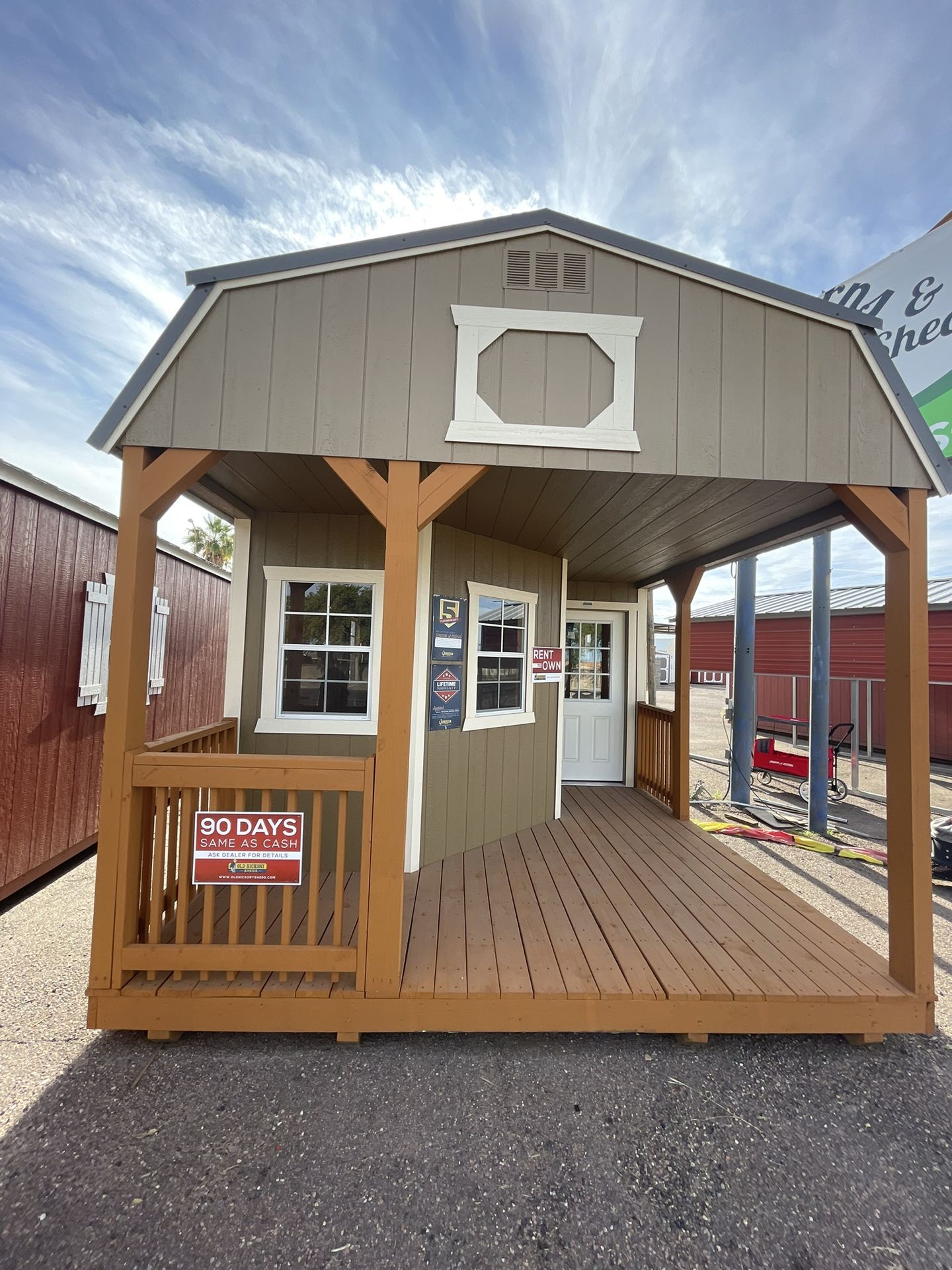 Turn heads and create the perfect backyard escape with our stunning 12x28 Deluxe Playhouse — one of our most popular styles, now on sale for a limited time! ✨ What makes it special: ✔️ Wraparound porch for charm & curb appeal ✔️ 9-lite entry door + five 2x3 windows (3 bay-style up front!) for tons of natural light ✔️ Loft space above – great for storage or creative ideas ✔️ Beautiful design meets real function 🎉 Save 10% this month only — don’t miss out on this rare deal! ( located at our Mesa lot, first 50 miles from us 🆓) Whether you’re dreaming of a cozy retreat, backyard office, she-shed, or play space — this deluxe structure offers style, space, and serious savings.