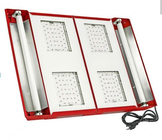 SolarStorm 800 LED Grow Light with UVB 450 to 625 Watts - 90 to 277 Volts - 80,000 Life Hours - California Lightworks CLW-SS-800 Description The SolarStorm 800 is the most powerful LED grow light on the market. It features 176 high-power 5-watt LED emitters for a total nominal power of 800 watts (176 x 5). The SolarStorm 800 also features a unique supplemental UV-B mode which is essential to develop higher potency harvest. The sun naturally contains large amounts of UVB. HID lights do not deliver any significant levels of UVB. No other LED grow light in the market covers the UVB spectrum because LED diodes are narrow band and focus their light in a narrow spectrum. SolarStorm employs unique T8 fluorescent UVB bulbs integrated into the fixture with a separate control. The UVB bulbs are typically turned on during final few weeks or finishing phase of the grow cycle to boost the potency of the final harvest. In Veg mode, the unit consumes around 450-watts. In Bloom mode, the unit consumes around 625-watts and in Bloom mode with the UVB T8 bulbs turned on, around 650-watts.