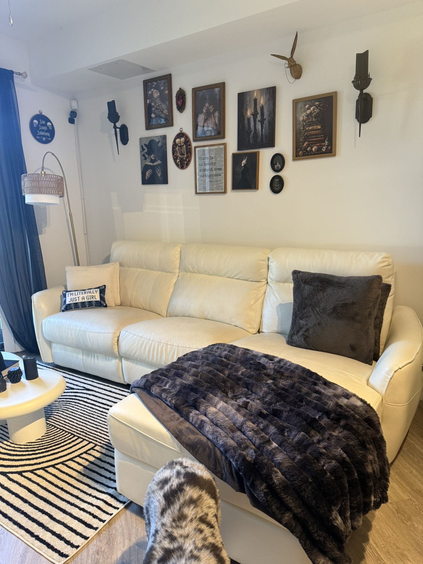 Has some wear and tear. I’ve had it for a bit it’s time to let her go. She’s a great interim couch willing to go low!
