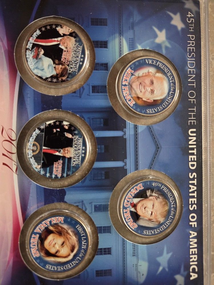 The commemorative 45th president of the United States Donald Trump and his administration on half dollar coin. S missing front plastic plate great for collection asking 80dls.