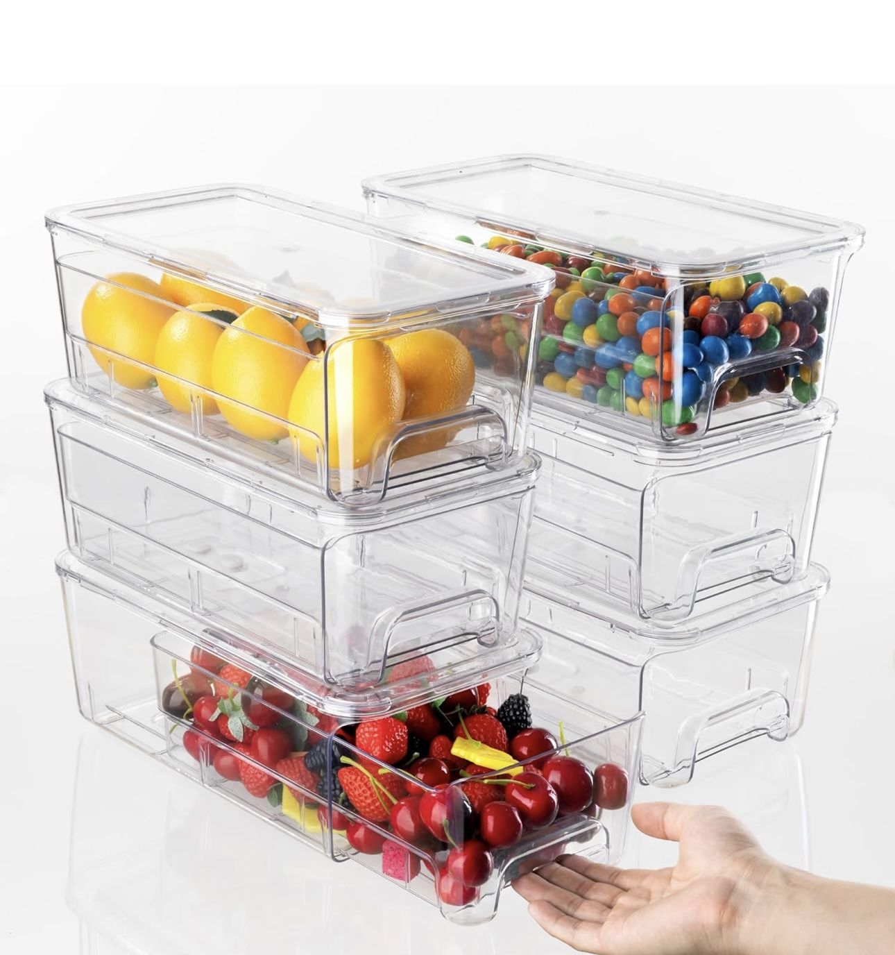 Audend 6 Pack Plastic Storage Containers with Handle for Pantry and Snack Organizers,